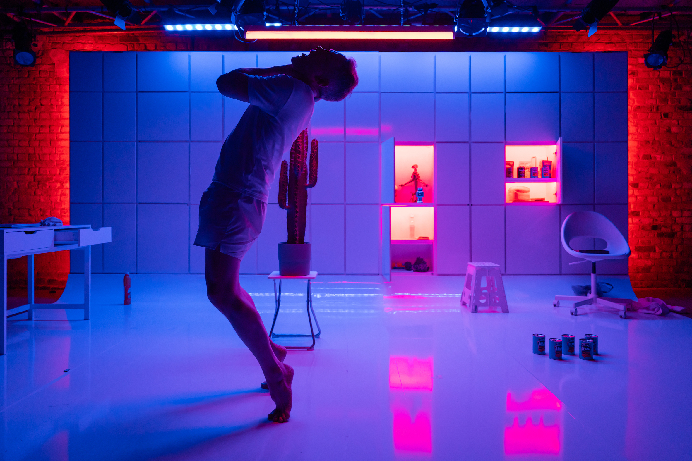 It doesn’t feel like Wynne has any serious points to make about the precarity or isolation of contemporary life. Bailey’s production is capable but fails to instil purpose in the material. The set, by Mark Britton, is a saving grace, a sleek vinyl floor with a wall of matching, light-up cupboards. But it’s a poor show when the designer comes off best.