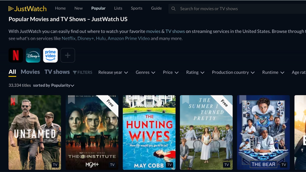 If you’re looking for recommendations, JustWatch is also a great place to start, with tabs letting you know what’s just been released across the major streamers, as well as what’s popular. There’s also quirky features like TV show tracking, allowing you to be notified when a new season drops, and lists made by users which may provide viewing inspiration.