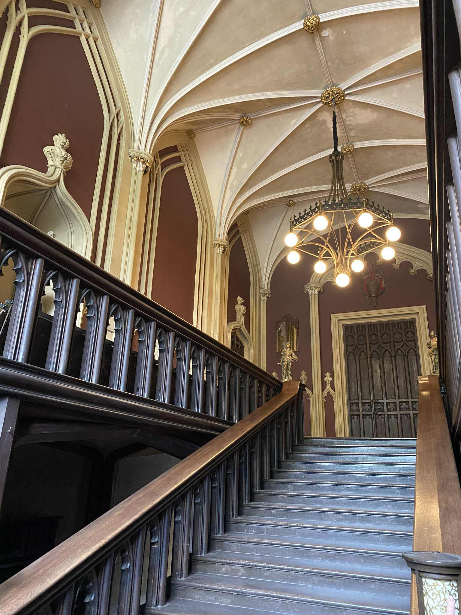 She slipped and fell to her death on the flagstone tiles below. A brass guard was subsequently installed on the bannister to stop those who might have a similar idea.