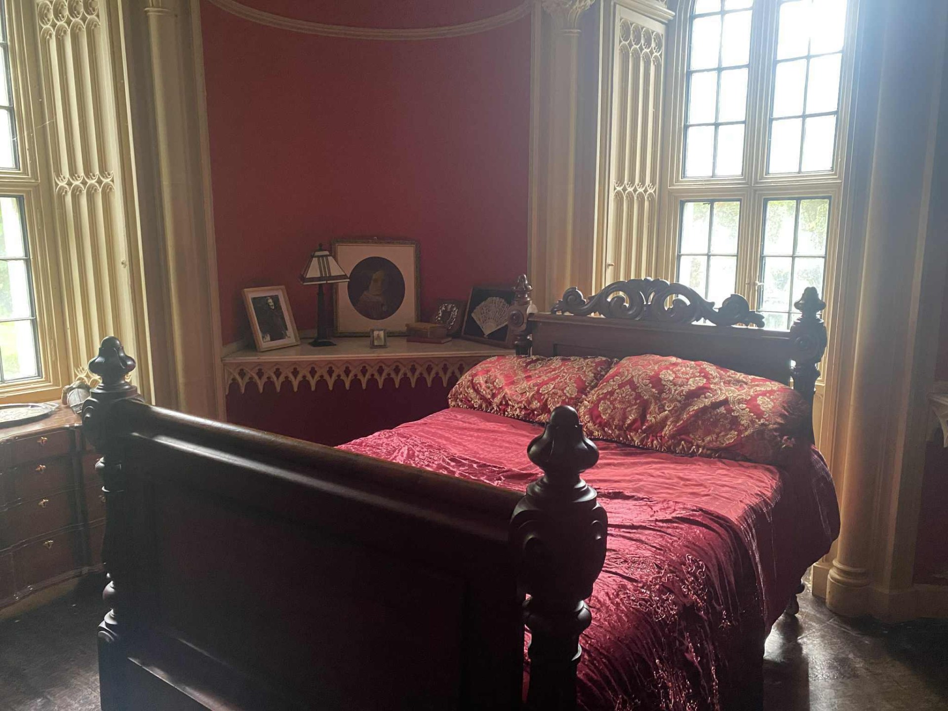 One unassuming bedroom – an imposing bed decked out in scarlet red covers, next to arched windows that don’t come with curtains attached – is supposed to be a hub of ghoulish hinjinks, with a door that has been reported to lock people in and out at will. Bonnie shut the door when we were inside, leaving everyone with a brief but queasy feeling before we were released.